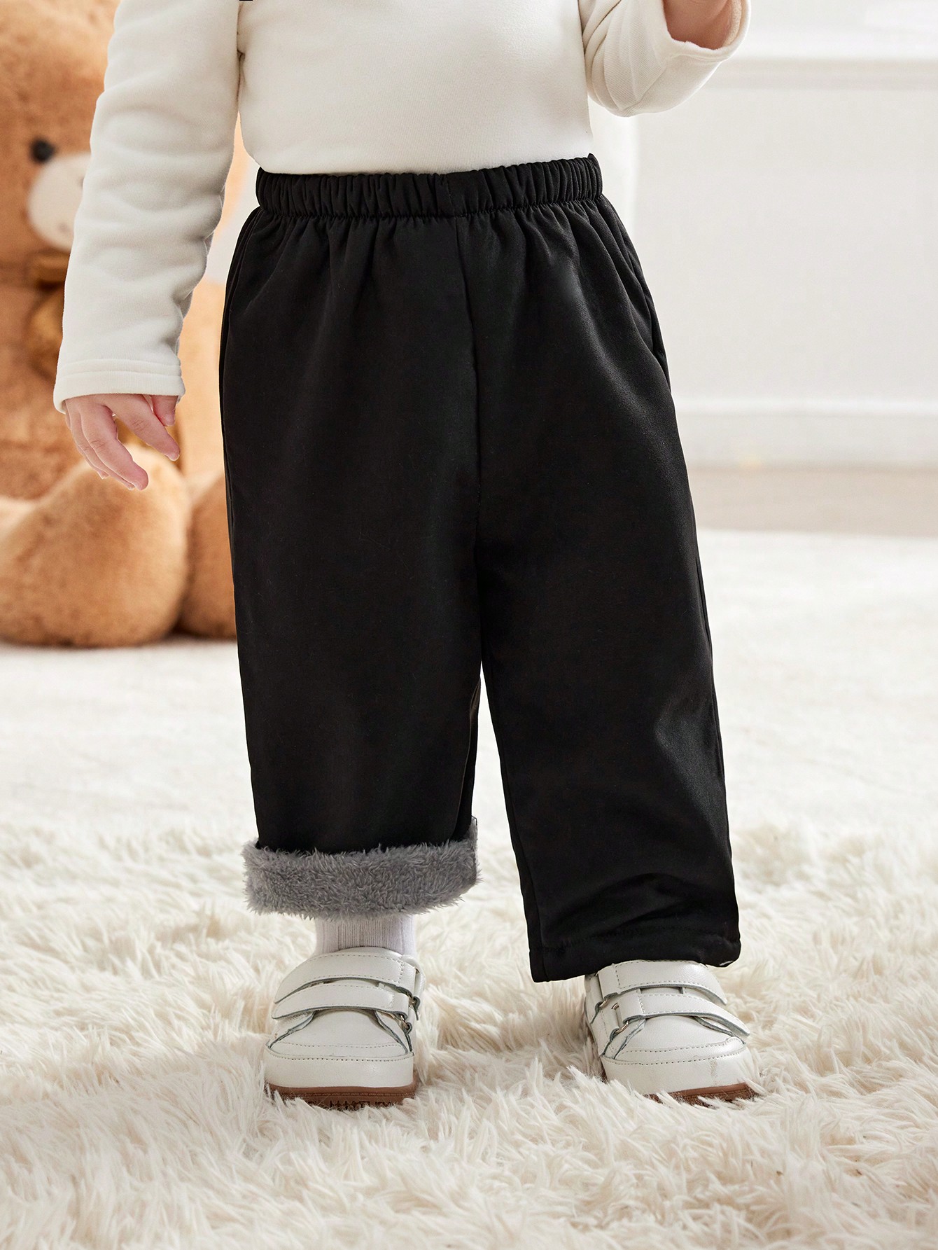 بنطلون للأطفال الصبية بأسلوب الشارع، دافئ ومريح مبطن حراريًا بساق مستقيمة، مناسب للمناسبات والتجمعات