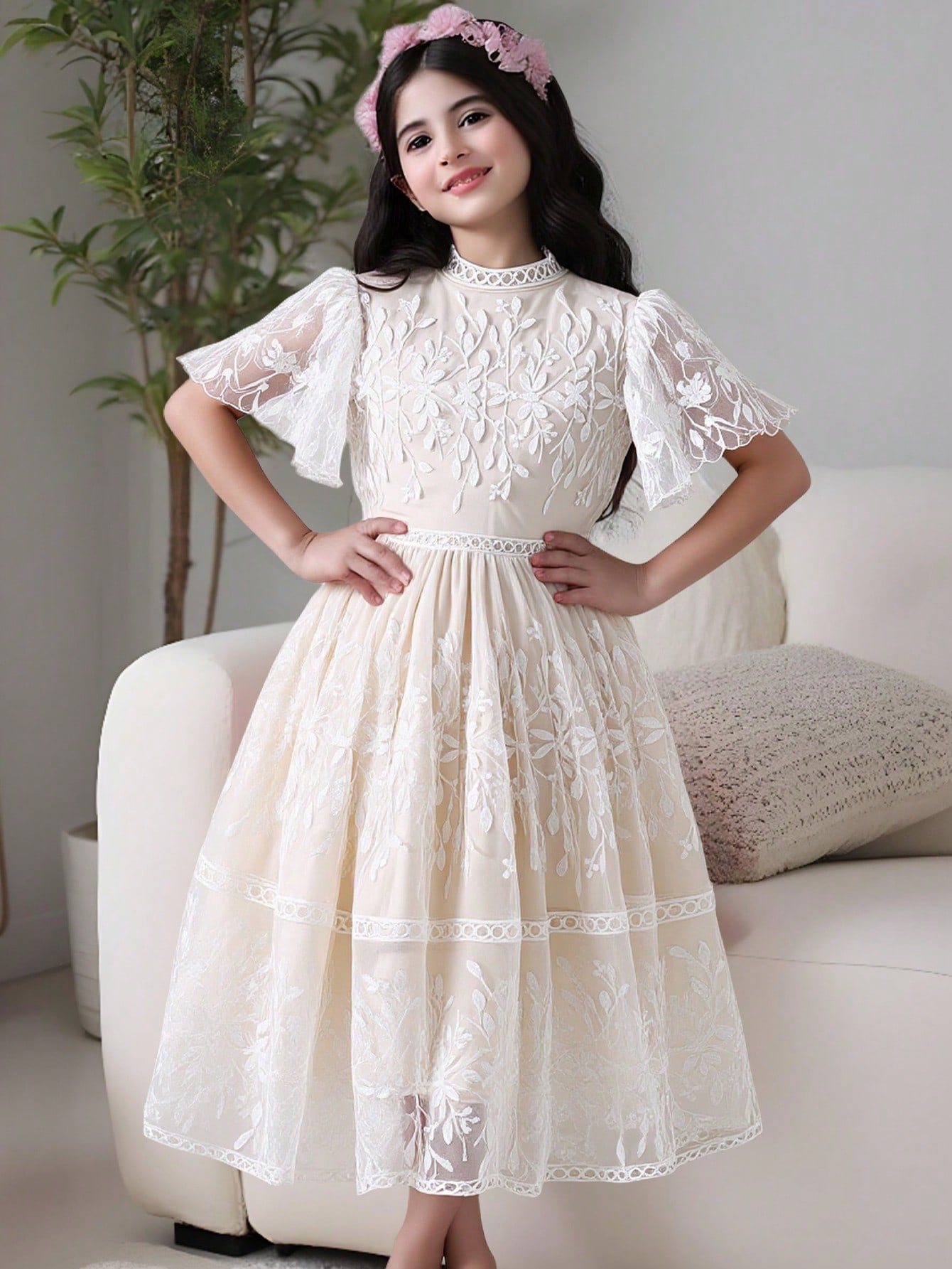 ثوب أميرة أنيق لحفلة عيد ميلاد الفتاة المراهقة بتطريز دانتيل