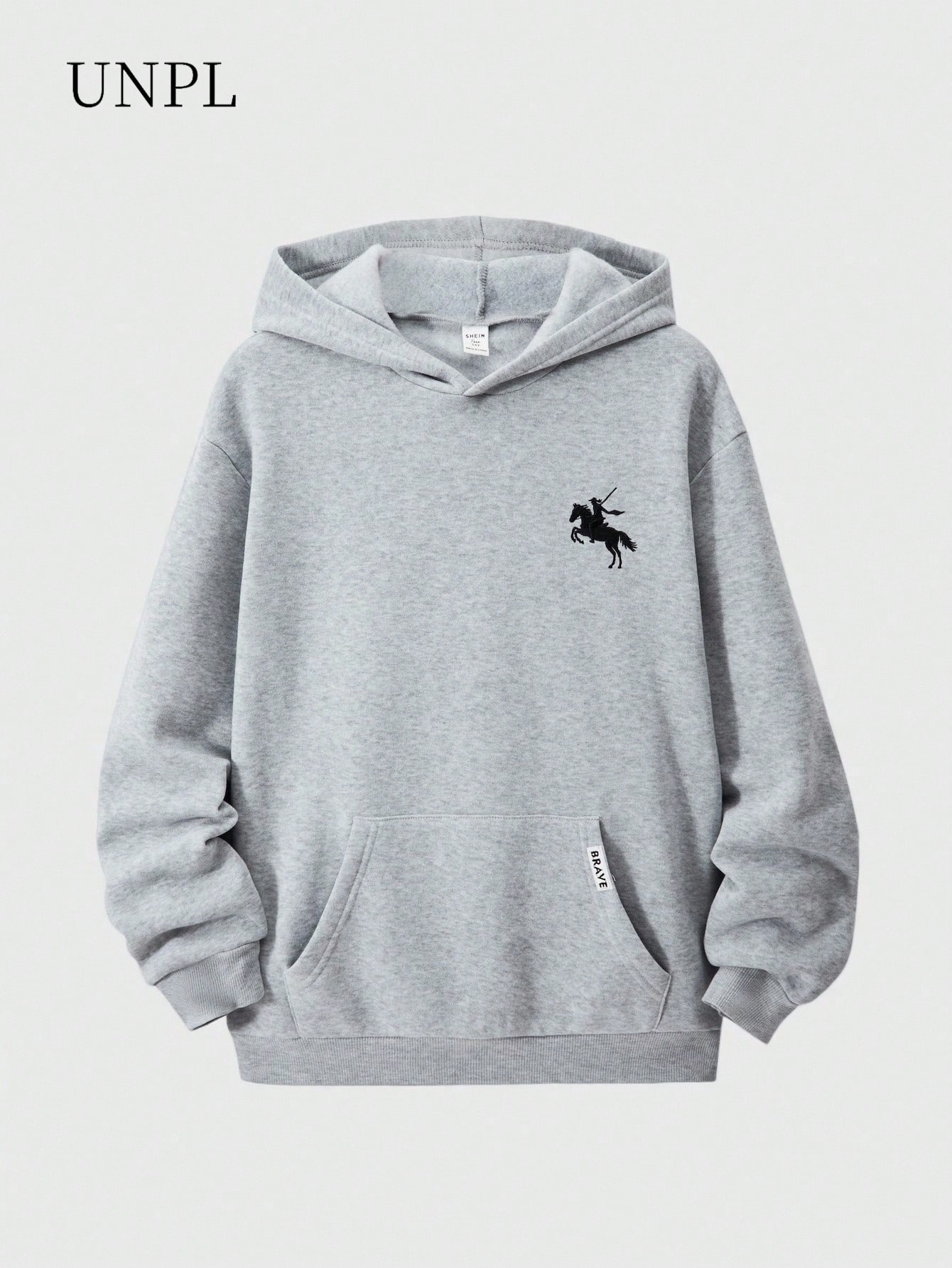 جاكيت هوديي بسيطة للمراهقين والشباب، بلوزة رياضية فضفاضة كاجوال باللون الرمادي
