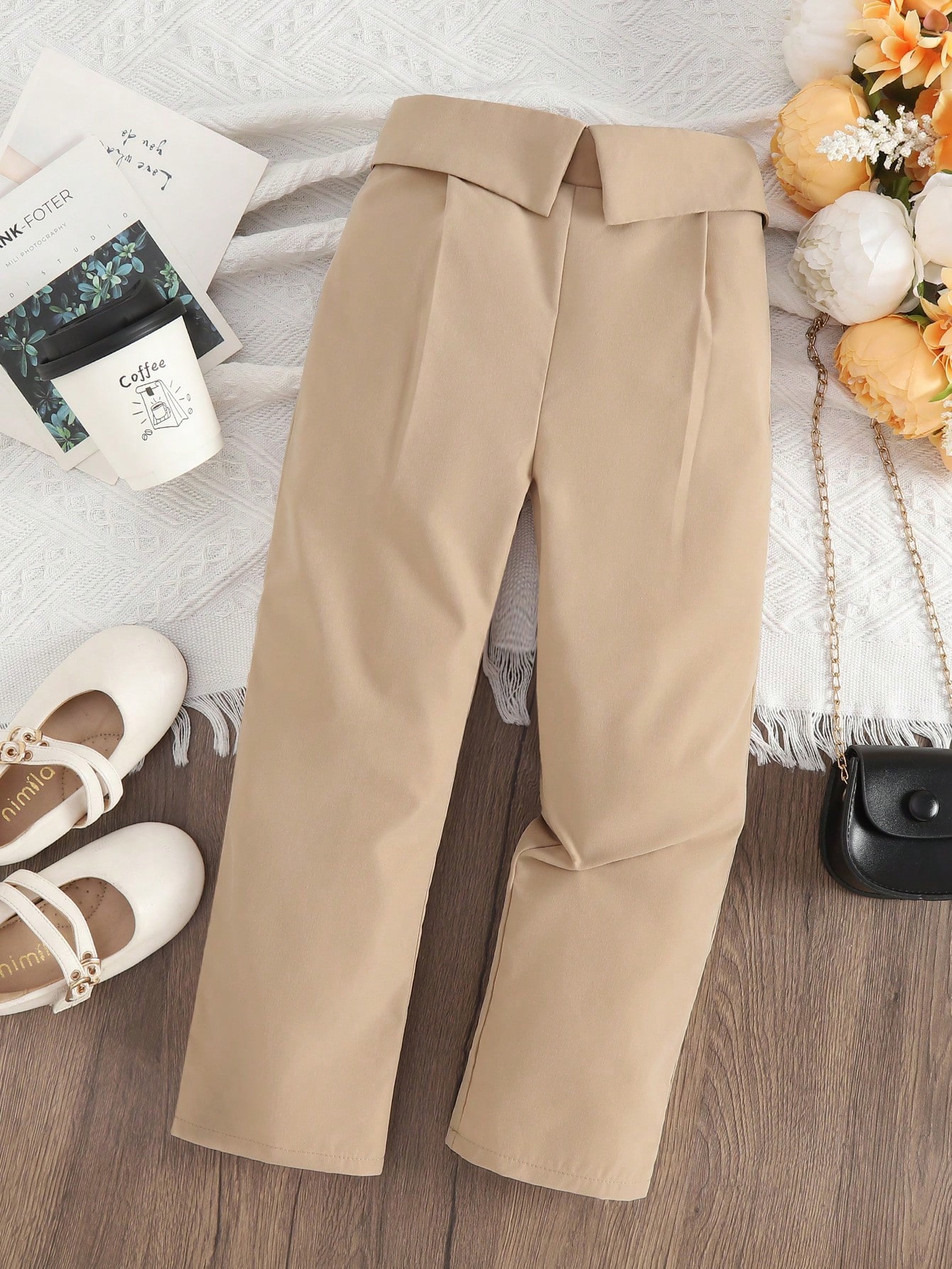 سروال طويل كاكي للفتاة الصغيرة ذو فتحة مدينة، بارد ومريح، مناسب للربيع والصيف والخريف، مريح ومتعدد ا