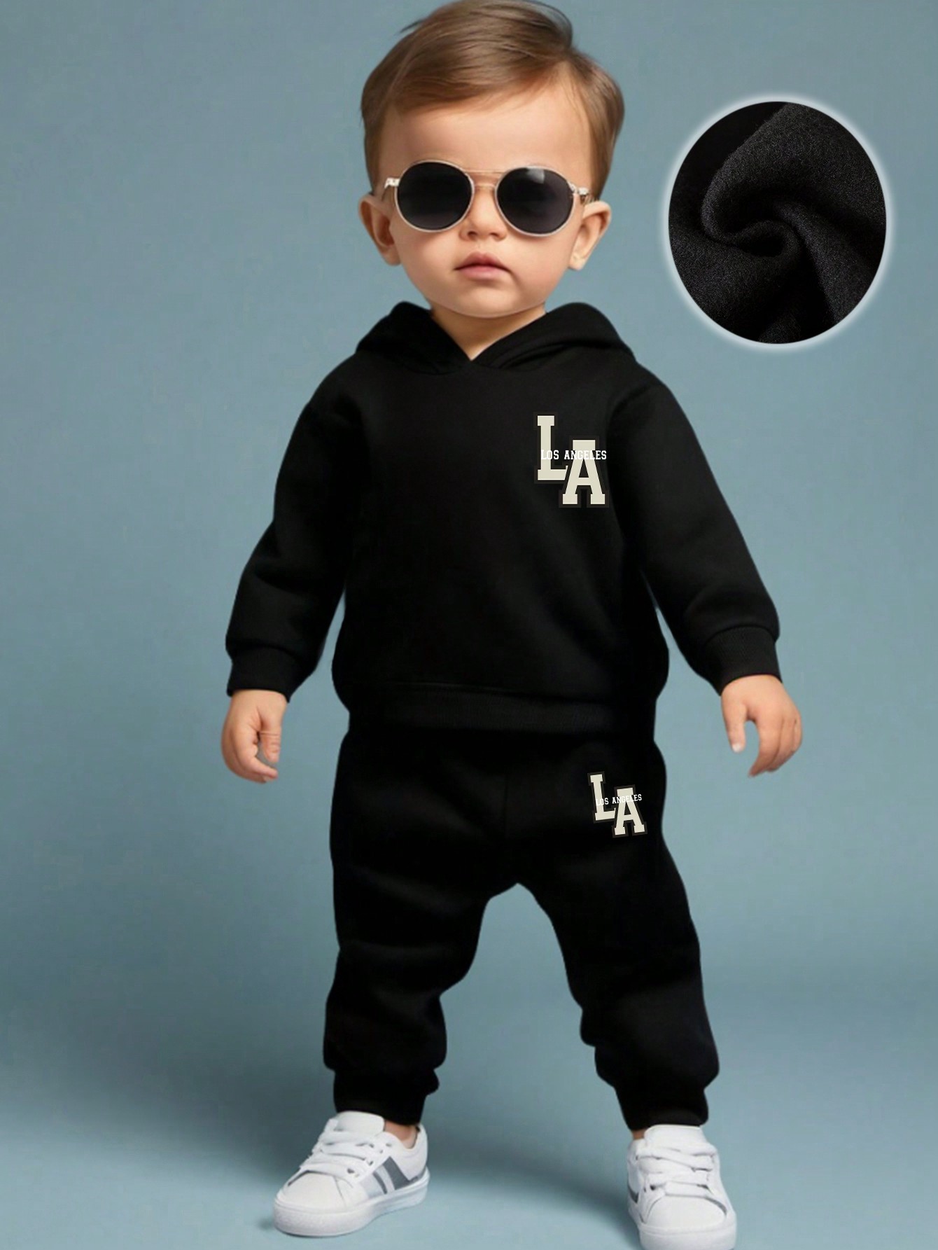 طقم هودي صوفي وبنطال للأطفال الصبيان بطباعة حروف مضحكة، ملابس كاجوال موضة للخريف والشتاء