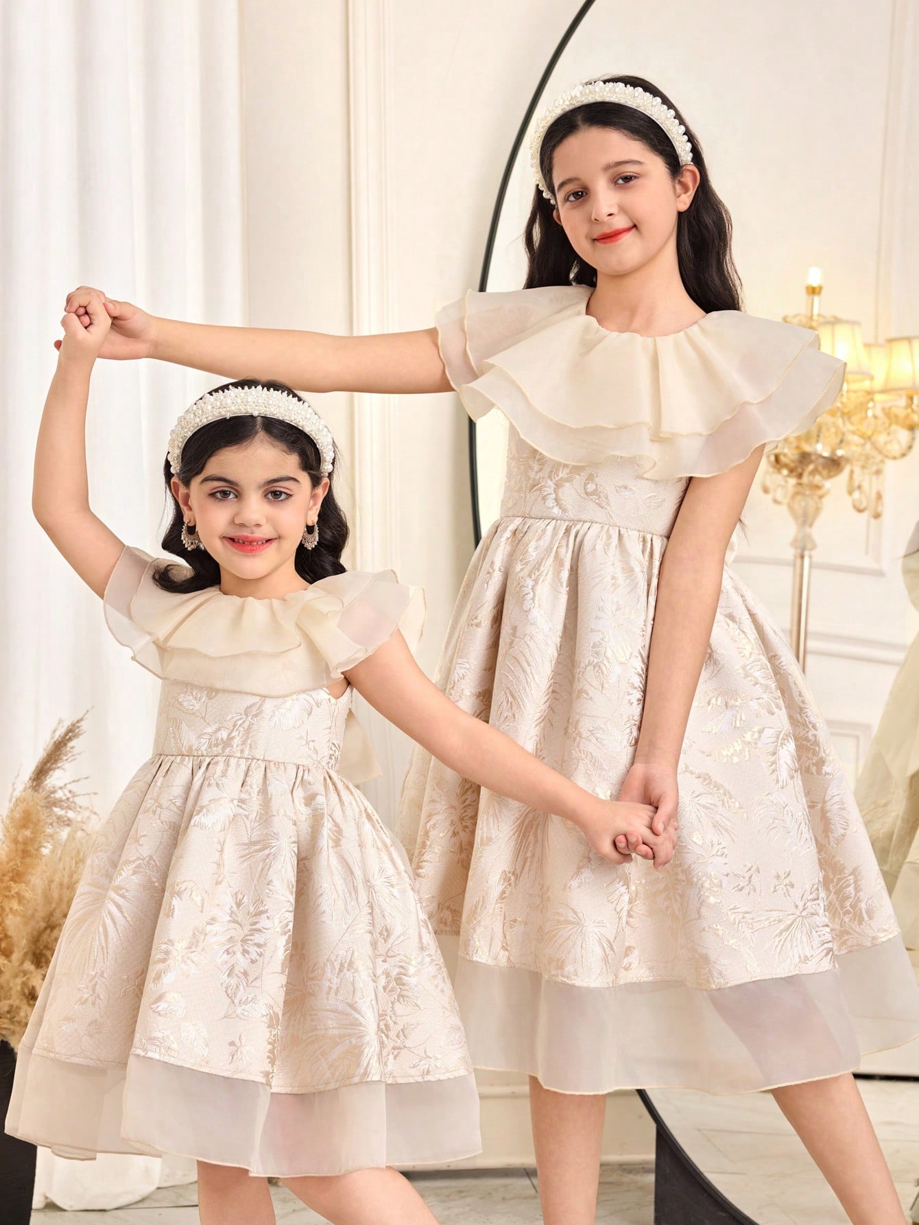 فستان أنيق بياقة مكشكشة مزخرفة مرقع من الأورجانزا بلا أكمام للفتيات المراهقات