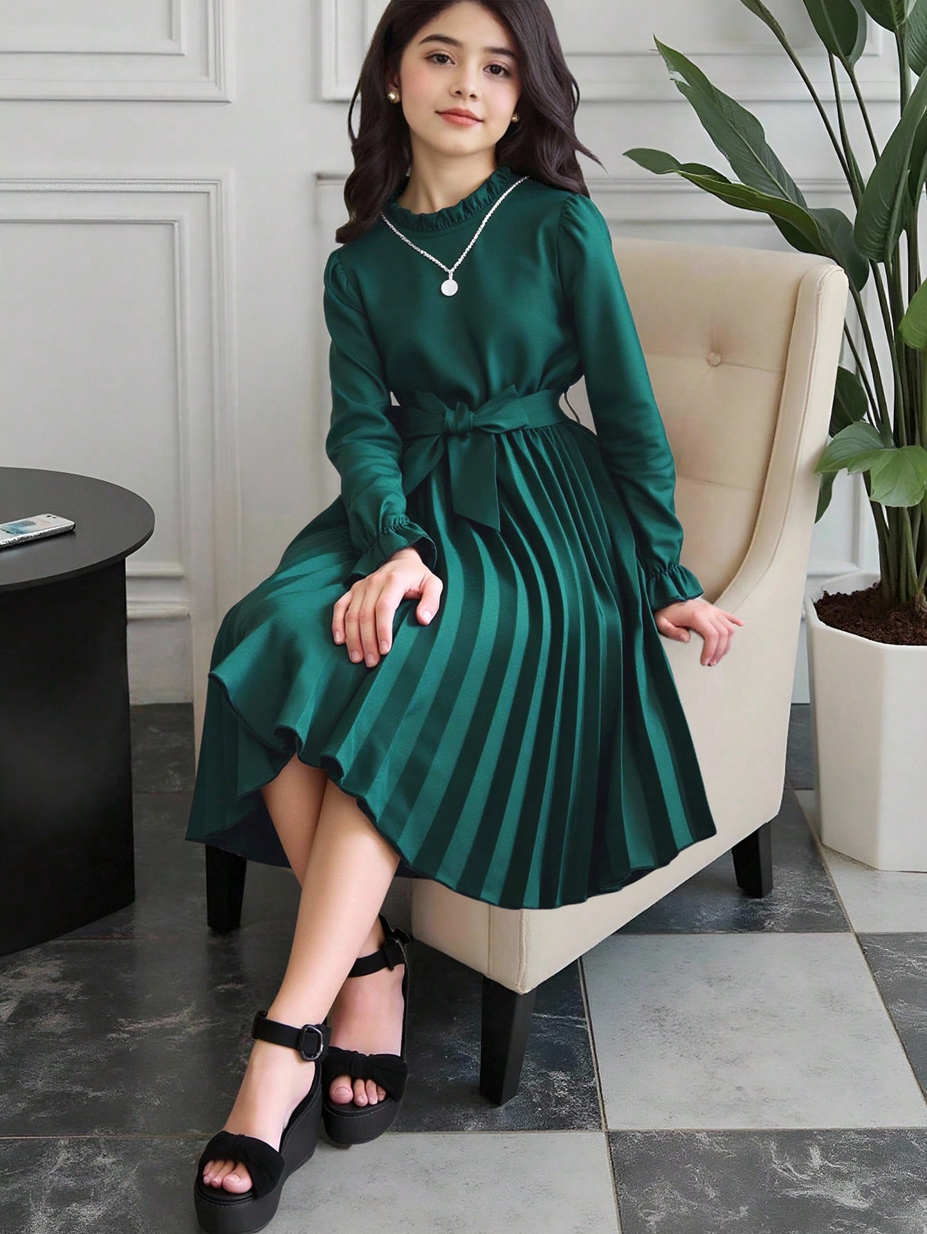 فستان بحزام للبنات المراهقات مزين بكشكشة على الذيل والخصر, ملائم للعطلات والصيف والسفر