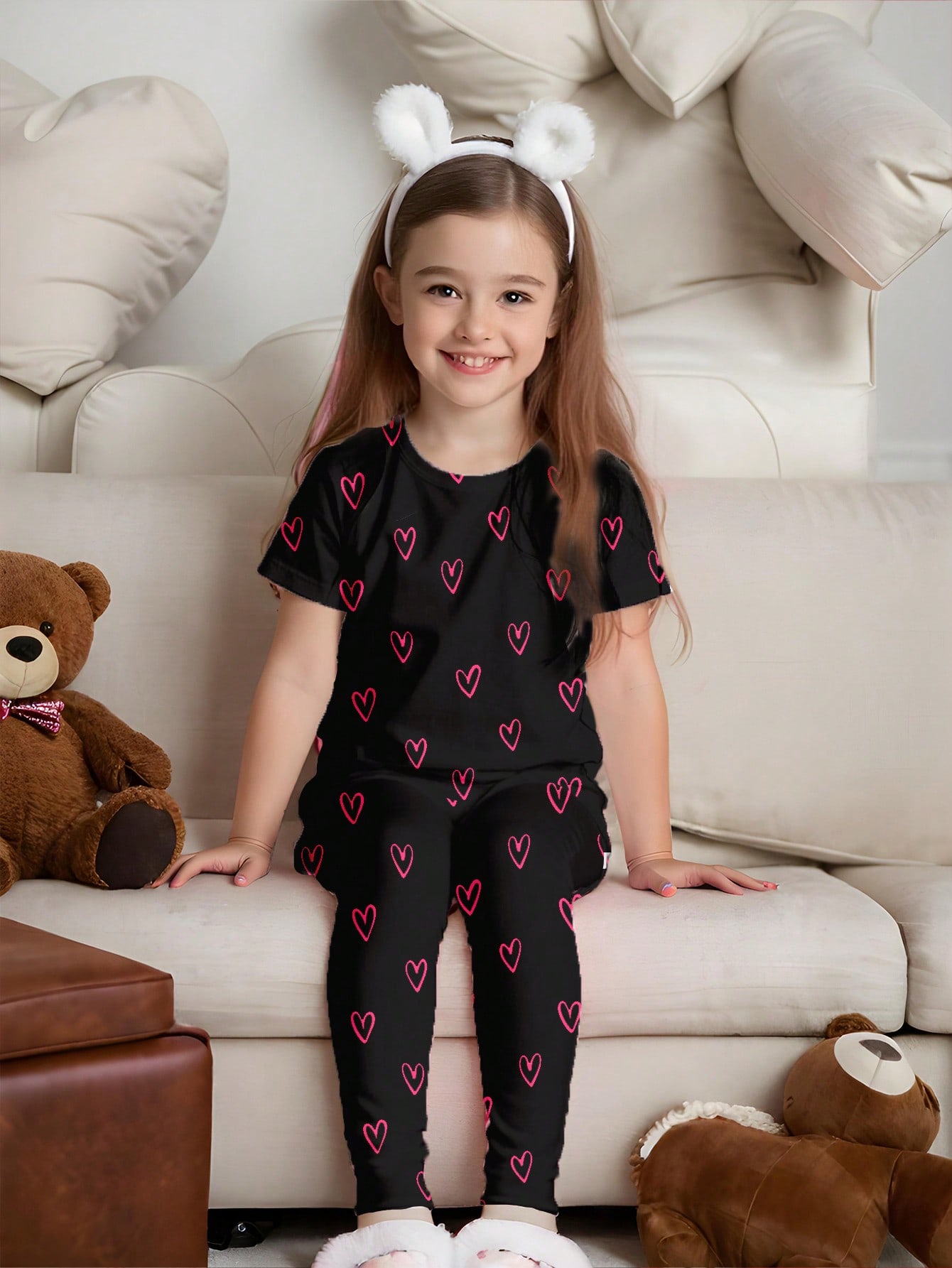 قطعة/طقم بنطلون مُموّه وتي شيرت كاجوال بطباعة كرتونية، أكمام قصيرة، مناسب للبنات، للاستخدام المنزلي
