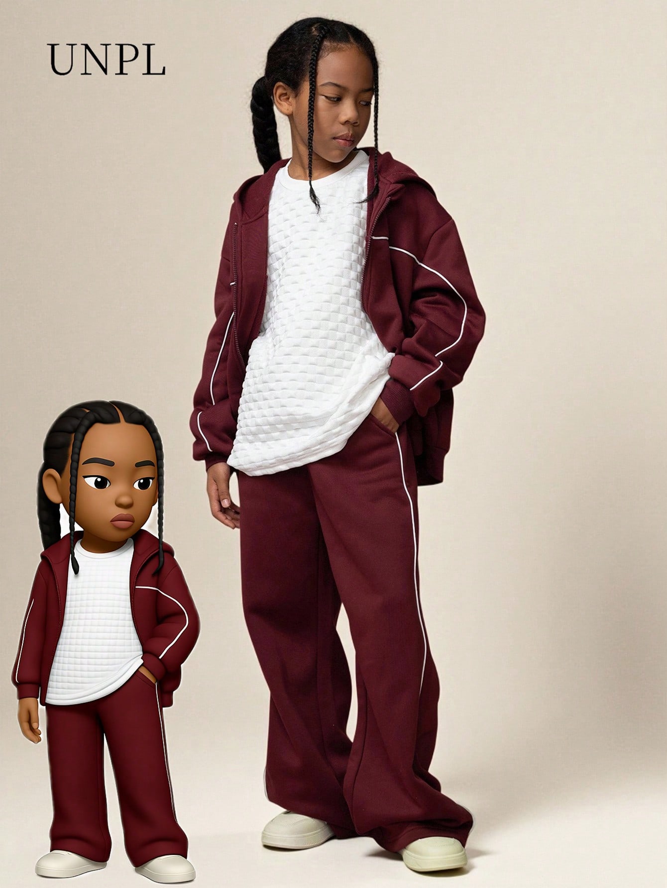 قطعتان من البدلة الرياضية الأمريكية الرجعية الحمراء للفتيات المراهقات، بدلة فضفاضة مكونة من هودي وبن