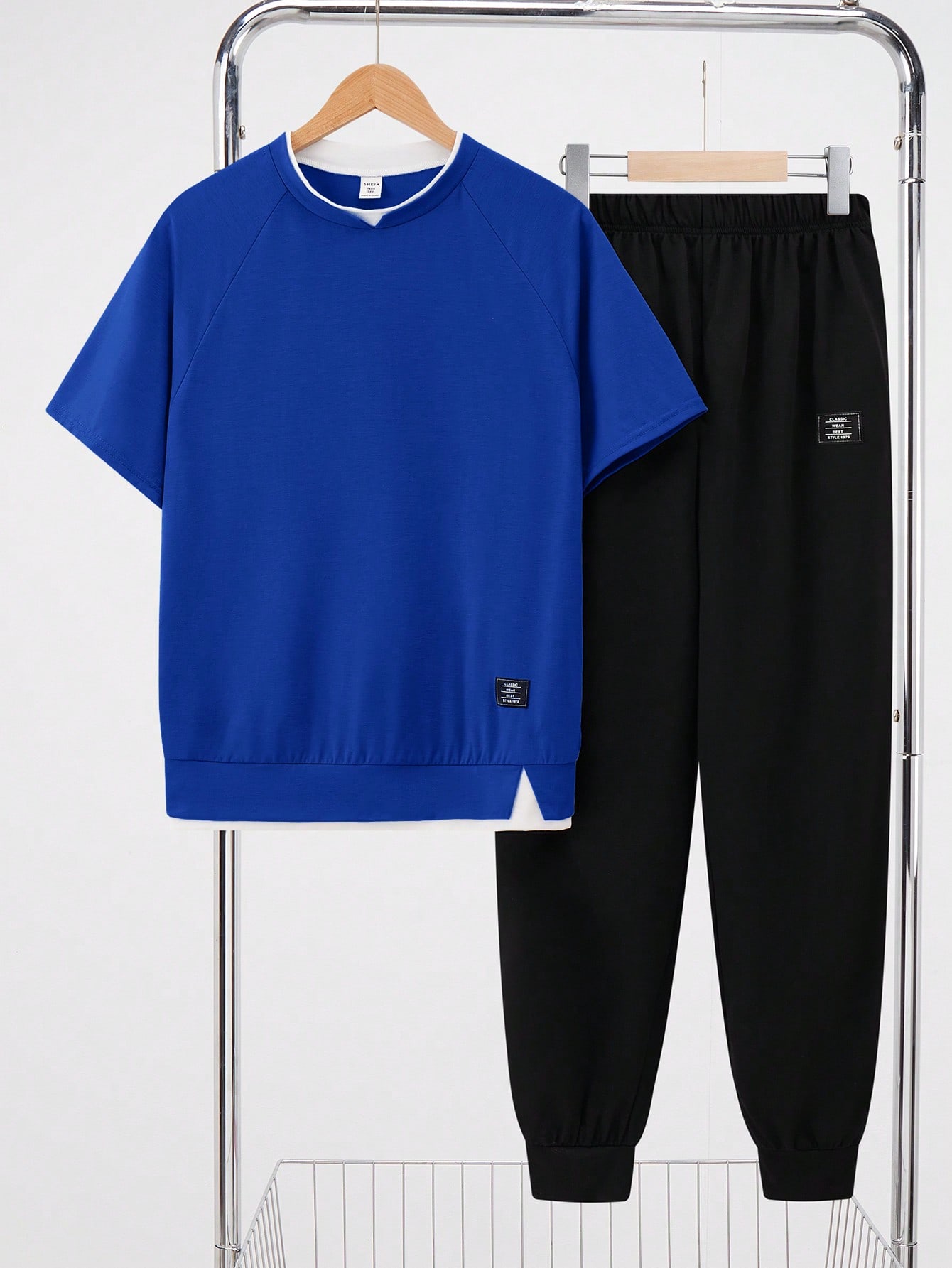 قميص بلون أسود وبنطال رياضي بنيني مجموعة مكونة من قطعتين ، ملائمة لفصل الربيع من ملابس الأطفال تصل م