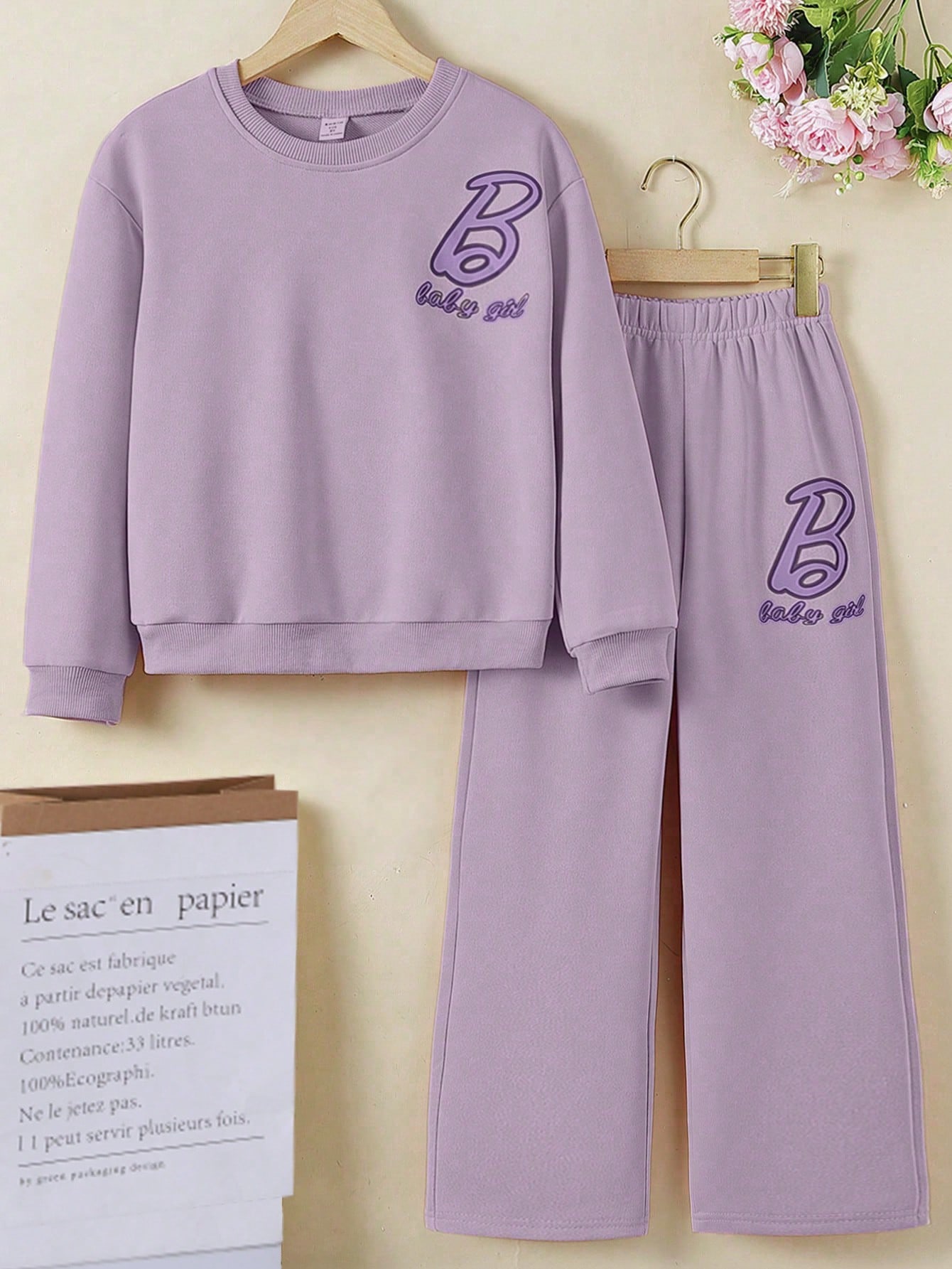 قميص ثقيل مع بنطلون رياضي بطباعة أحرف بنت طفل