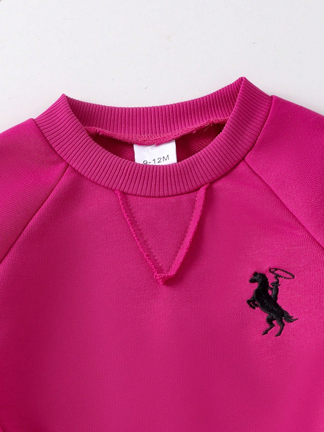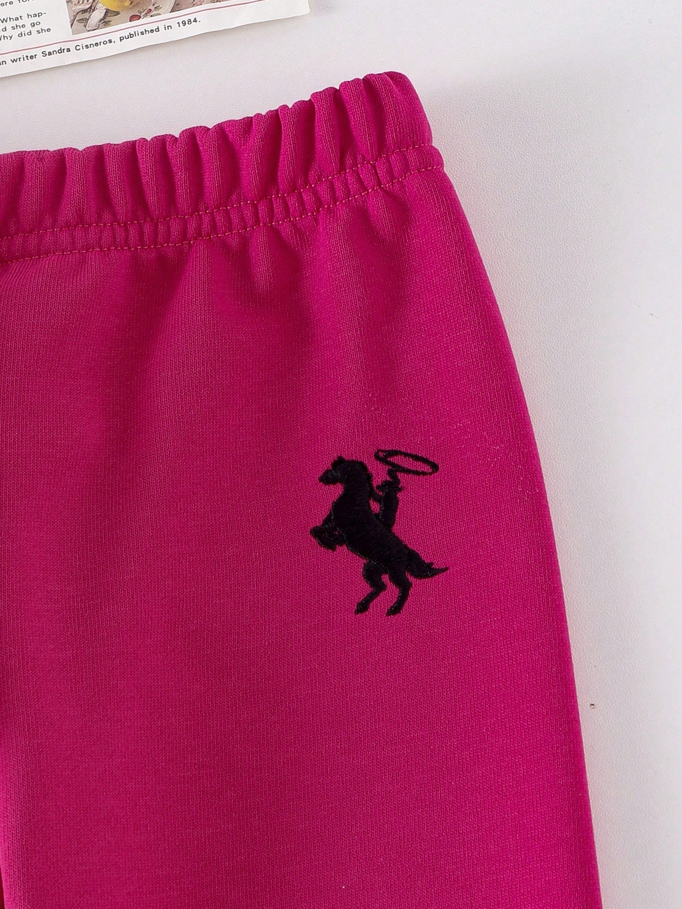 مجموعة بنطلون وبلوزة رياضية للأطفال والبنات بطرز حصان رياضي للاستخدام اليومي، خفيفة الوزن للخريف و ا