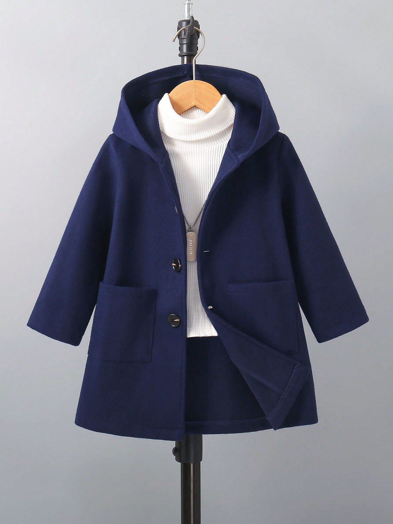 معطف صوفي مقنع بأكمام طويلة وجيبين للأولاد، لون أحادي، للاستخدام اليومي، شتاء