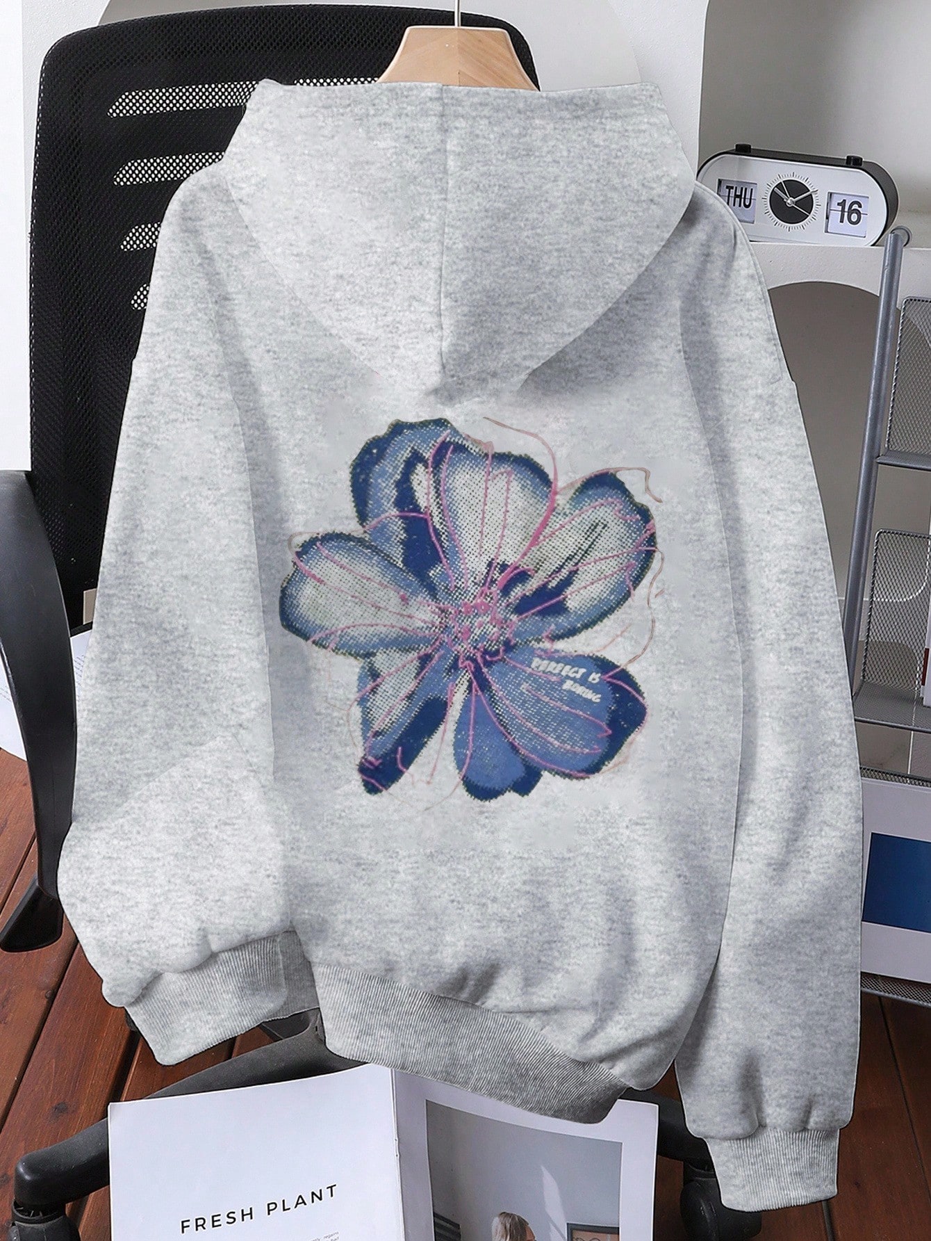 هودي بطبعة زهرية للمراهقات، ملابس علوية رياضية مريحة وفضفاضة بطبعة زهرية، مناسبة للخريف/الشتاء