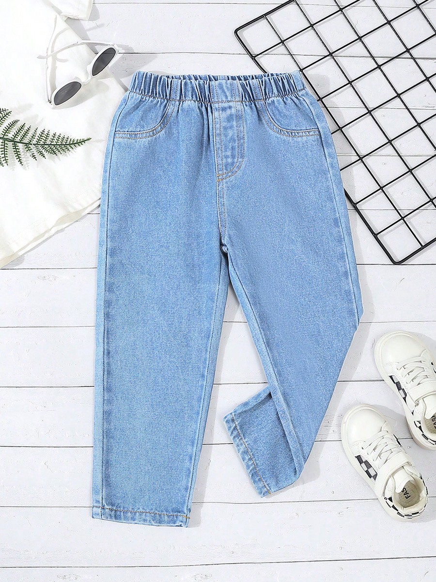 1 قطعة بناطيل جينز أزرق كاجوال بسيطة أنيقة للشارع، للربيع والصيف