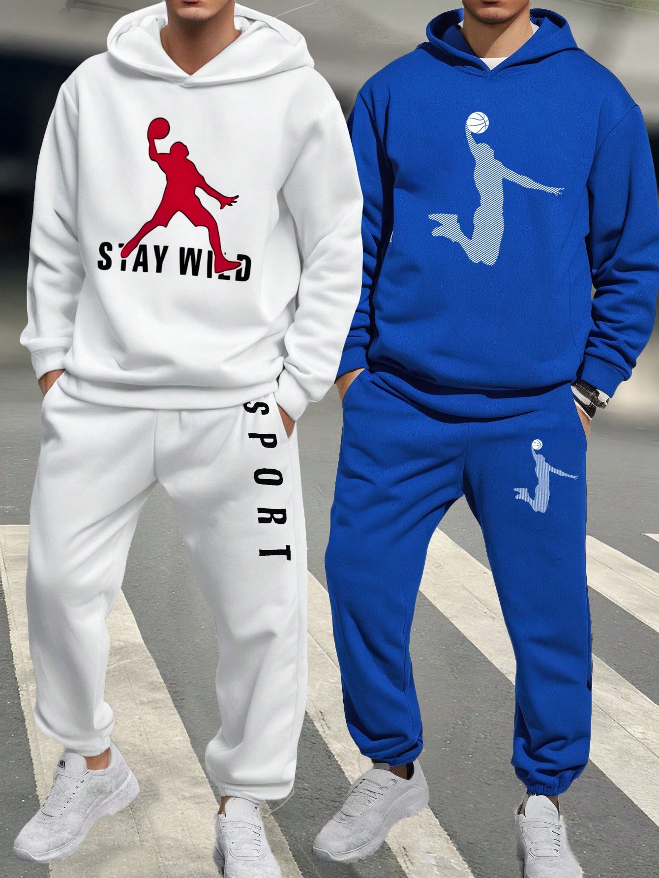 4 قطع مجموعة رياضية للأولاد المراهقين مكونة من هودي بنمط لاعب كرة السلة مطبوع وبنطال بخصر مطاطي، منا