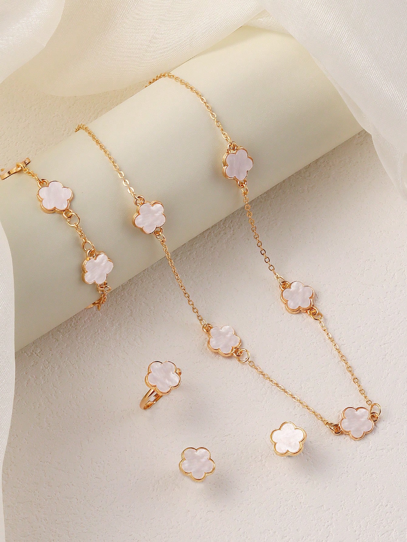 5 قطع/مجموعة مجوهرات رومانسية وجميلة للفتيات تشمل سوار وقلادة وأقراط وخواتم مزينة بالأزهار ، إكسسوار