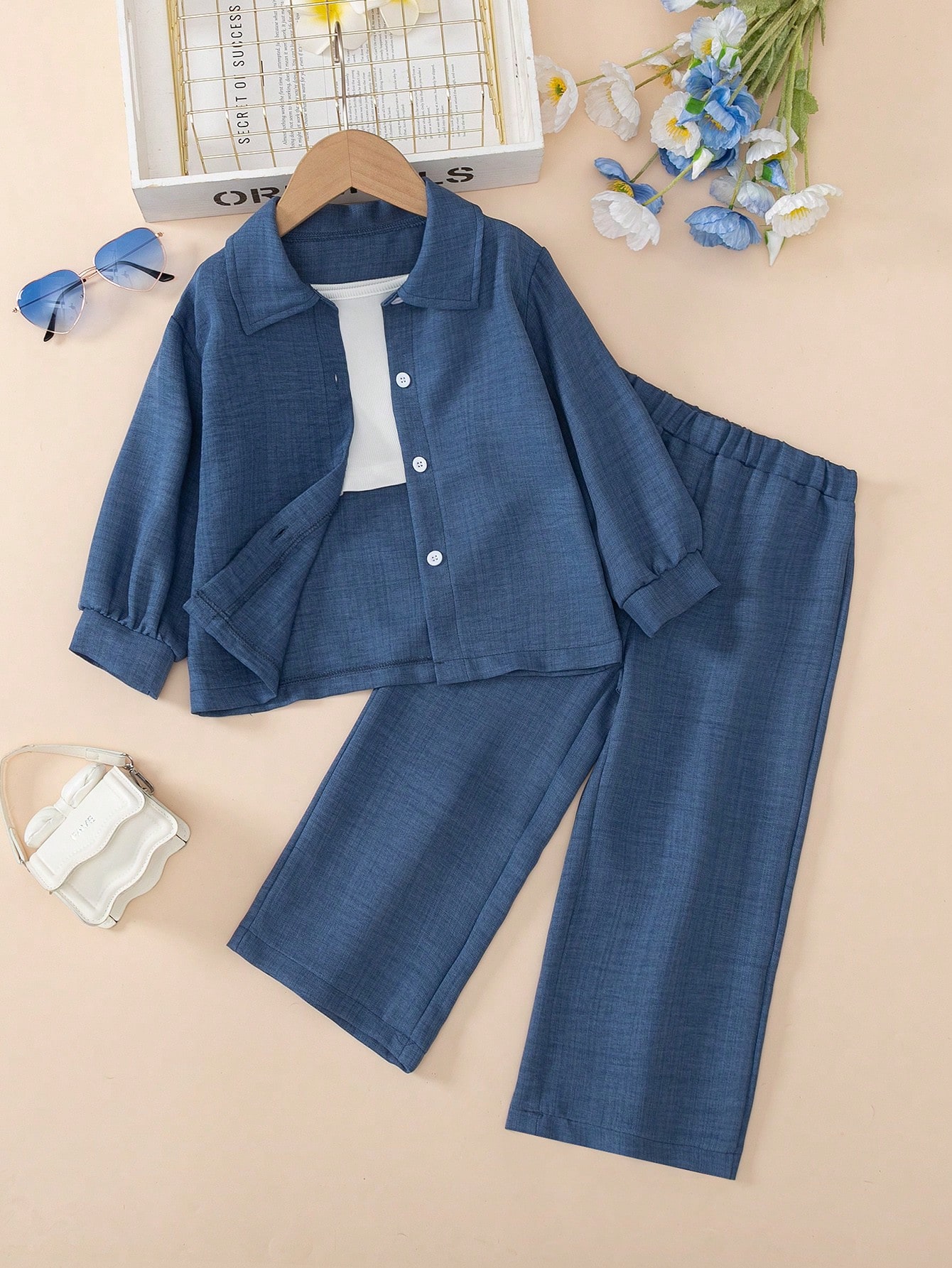BASUSARRI طقم بنطلون واسع الساق وقميص أكمام طويلة مزرر للبنات، جديد لموسم الخريف/الشتاء، إطلالة أنيق