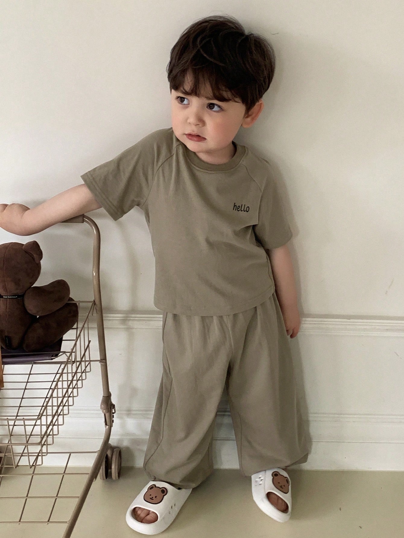 Hapijoa طقم بجامة للأطفال الصغار 2 قطعة، قميص طاقم رقبة وبنطلون مريح باللون الأحادي