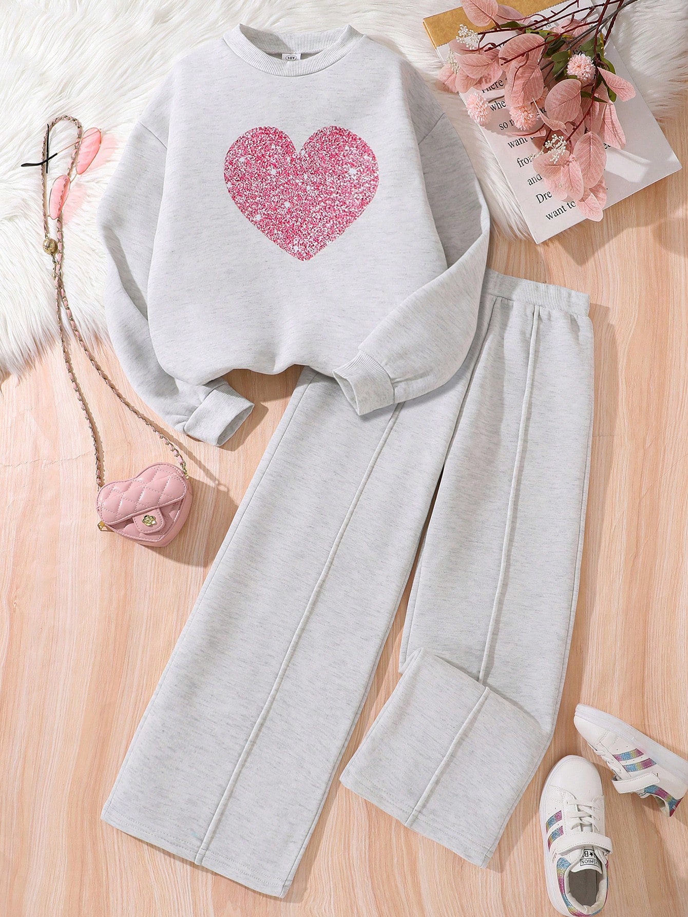 Left Mama مجموعة ملابس علوية كم طويل مطبوع بالنقوش الزهرية و بنطال مستقيم للفتيات المراهقات، بطانة ح