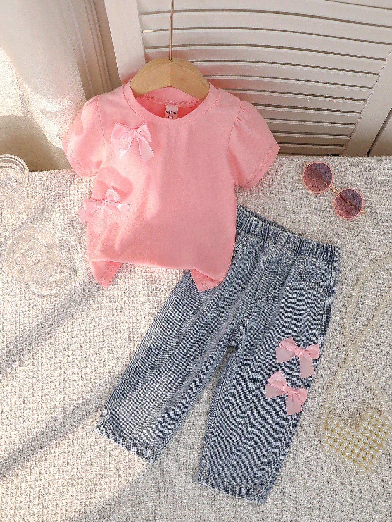 Playful Pals طقم صيفي للبنات الرضع ملابس علوية مع فراشة ثلاثية الأبعاد وبنطلون قصير الأكمام
