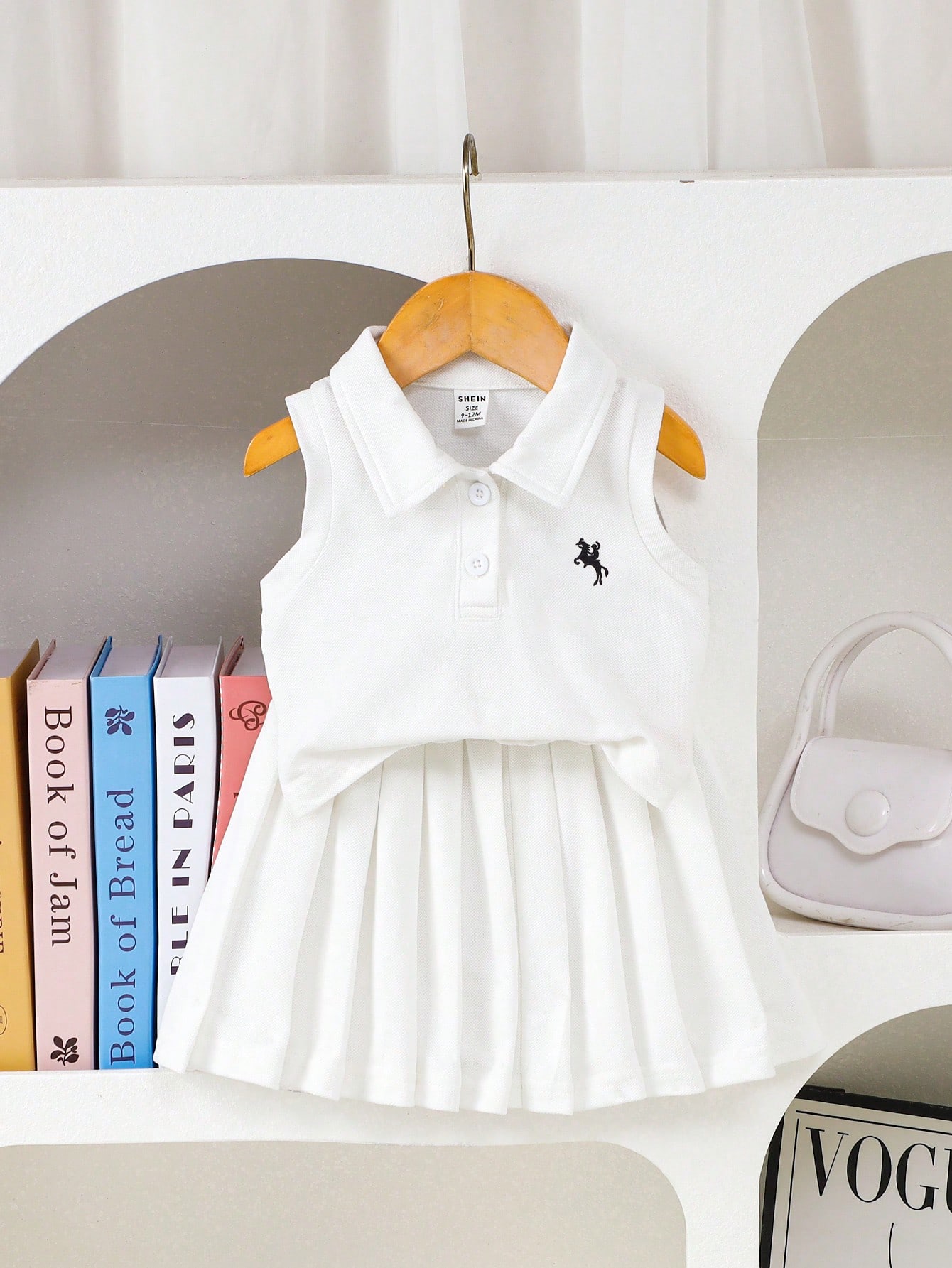 Souflis Souflis 2 قطعة/مجموعة ملابس علوية أكمام قصيرة وتنورة بطراز التنس للرضع/البنات ذات اللقب البو